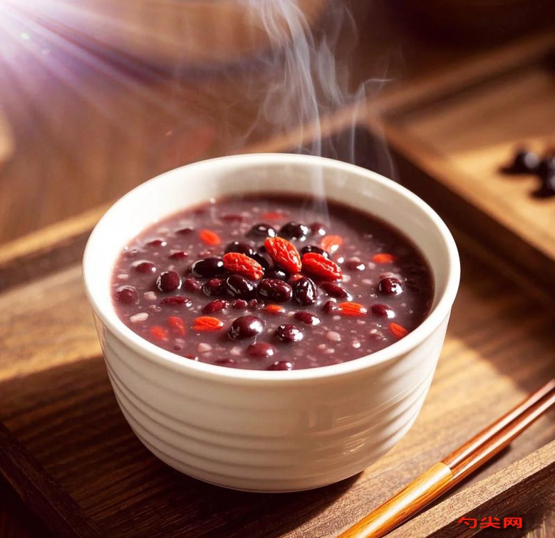 注意事项:挑选黑米、糯米、红豆等食材时,要选颗粒饱满、色泽正常、无虫蛀的,保证粥的品质。清洗要彻底,去除杂质。浸泡时间要恰当,时间短食材吸水不足,煮制不易软烂;时间长可能滋生细菌。煮粥先大火烧开再转小火,大火使粥快速沸腾,小火熬出香味和浓稠度。枸杞最后加入,能保持色泽和口感。储存时冷却至室温再放冰箱,且不宜存放过久。