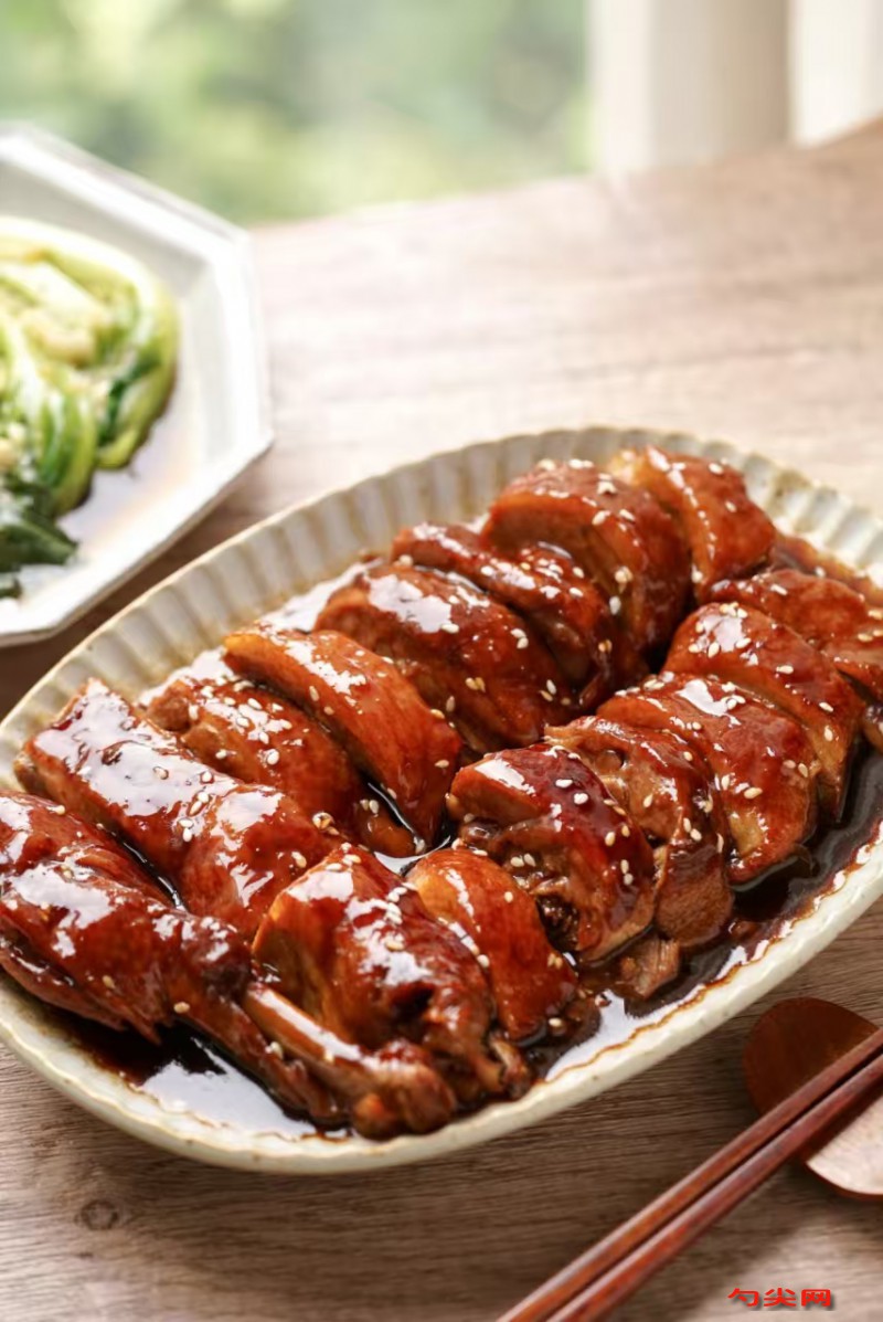 注意事项:鸭肉的选择至关重要,应选用新鲜、肉质紧实、无异味的鸭肉。腌制时间需足够,使鸭肉充分吸收腌料的味道,腌制过程中需翻动鸭肉块,使其腌制均匀。炖煮时,需控制好火候和时间,避免鸭肉过火或未熟,影响口感和外观。炖煮过程中需不断翻动鸭肉块,以确保其受热均匀,炖至汤汁浓稠,鸭肉色泽红亮,口感鲜嫩。出锅前,可根据口味调整酸梅酱和冰糖的用量,以达到最佳口感。