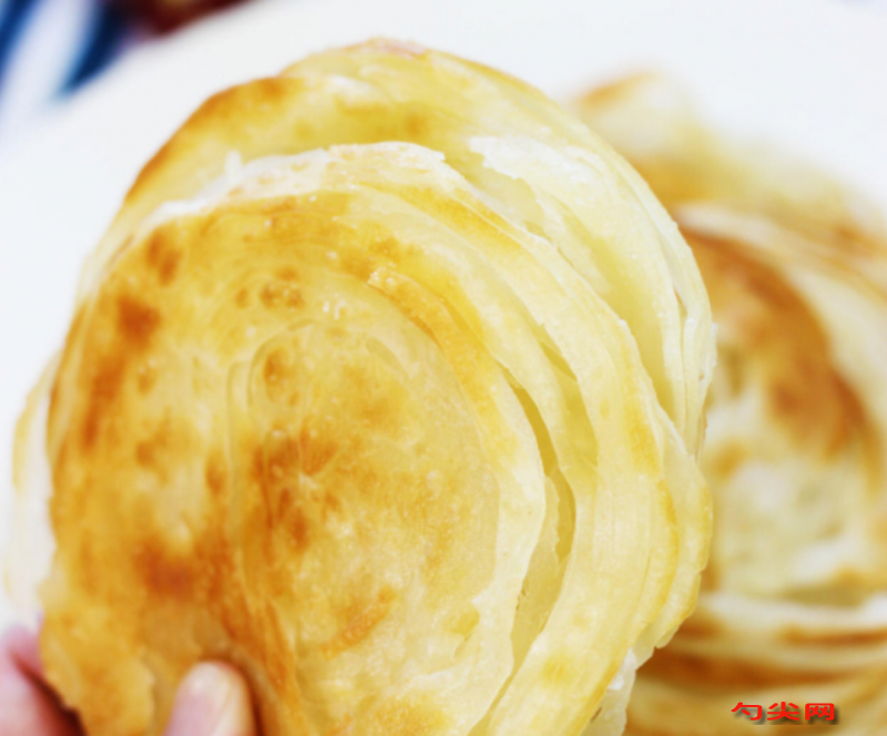 注意事项:搅成面絮再揉光滑,避免结块影响膨松度。面团需盖保鲜膜醒20分钟,时间不足会导致延展性差,容易断裂;环境干燥时可喷少量水保湿。划条后卷制需捏紧接口,防止散开;擀饼时厚度保持1cm,过薄易焦,过厚不酥。平底锅刷油后中小火烙制,底部上色再翻面,频繁翻动易碎;烙至金黄后轻敲层次。