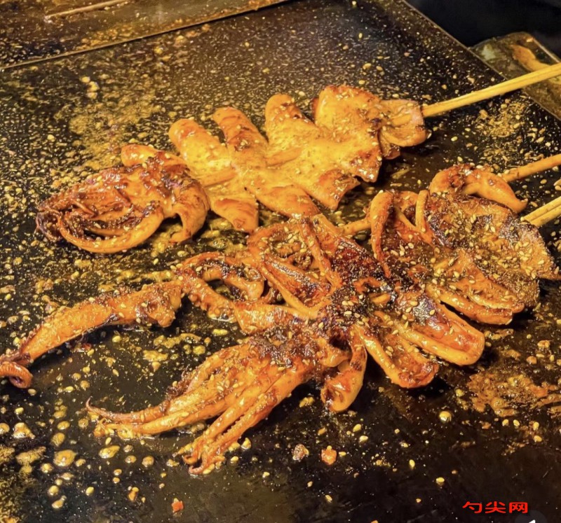 工艺:将500克鱿鱼处理干净后切成长条状,放入500克冰水中,加入用40℃温水溶解好的海立美B4克和味达蕾902号2克,搅拌均匀后冷藏腌制4小时,腌制期间每隔1小时翻动1次,确保入味均匀,将海鲜酱80克、蒜蓉辣椒酱40克、香辣酱20克、白砂糖50克、花椒粉20克、孜然粉20克、芝麻酱40克混合,分3次加入150~180克纯净水,每次加入后顺时针搅拌至完全融合,最终形成浓稠酱汁,平底锅预热至180℃,倒入30克食用油,放入30克洋葱碎中火煸炒至金黄出香,将腌制好的鱿鱼沥干水分,平铺在洋葱碎上,用锅铲按压定型,中火煎制2分钟至表面微黄,翻面后继续按压煎制1.5分钟,期间用厨房纸吸去多余水分,煎至鱿鱼卷曲度减少且表面干爽时,用剪刀在鱿鱼表面剪出交叉花刀,深度达鱿鱼厚度的2/3,将调好的酱汁均匀刷在鱿鱼两面,每面刷酱后按压煎制30秒,重复刷酱2次,第二次刷酱后沿锅边淋入20克纯净水,加盖焖煮1分钟至酱汁浓稠,开盖后撒入10克辣椒粉和10克孜然粉,快速翻拌均匀,最后撒上10克葱花即可出锅