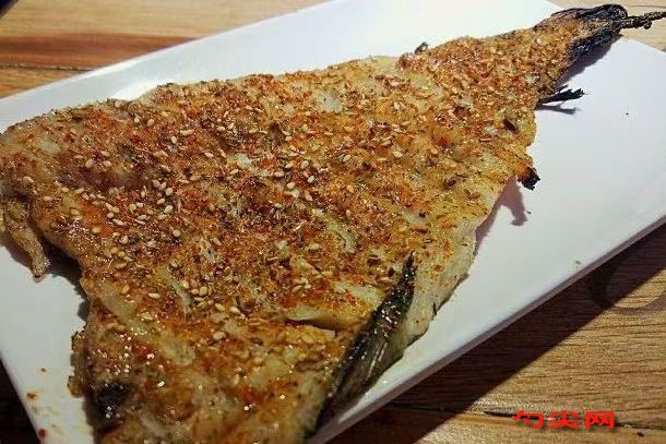 工艺流程:将鳕鱼去鳞、清洗干净,放在案板上沿鱼背部中间线切开,分成两半,腹部相连,取出内脏,再次清洗干净。在鱼的两侧改花刀,方便入味,翻个面里边也用刀改花刀。把鱼放入盆中,称取8克海立美B,用少许水化开,淋浇到鱼身上,抹匀。再依次放入葱段、生姜、胡椒粉、味达蕾902号,鸡精、生抽、料酒、盐等。戴上手套将配料涂抹均匀,确保鱼全身都涂抹到,放在一旁腌制30分钟。30分钟后将鱼放到烤架上,表面刷油,一定要勤翻个、勤刷油,防止烤焦,烤至两面金黄。表面撒上适量的盐、辣椒面,然后刷点油,再撒上一层孜然、芝麻,翻个面继续撒上适量的盐、辣椒面,然后刷点油,再撒上一层孜然、芝麻,烤熟即可食用。