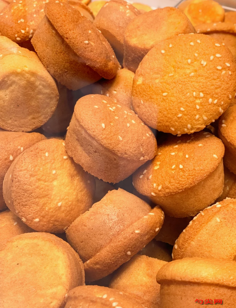 工艺:将白糖500克与鸡蛋380克倒入搅拌机,中速打发20分钟至体积膨胀、颜色变浅且纹路不易消失,将低筋面粉500克与泡多源G型10克干拌均匀,过筛后分三次加入打发好的蛋液中,慢速搅拌至无干粉状态,加入食用油50克,边倒边搅拌至油面完全融合,美久亭Q1克用20毫升凉开水溶解后倒入面糊,快速搅打10秒至均匀,模具底部刷油,将面糊装入裱花袋挤入模具至八分满,表面撒白芝麻15克,端起模具轻震两下排出气泡,烤箱提前180℃预热,放入烤盘烤30分钟至表面金黄,用牙签插入无湿黏即可出炉。