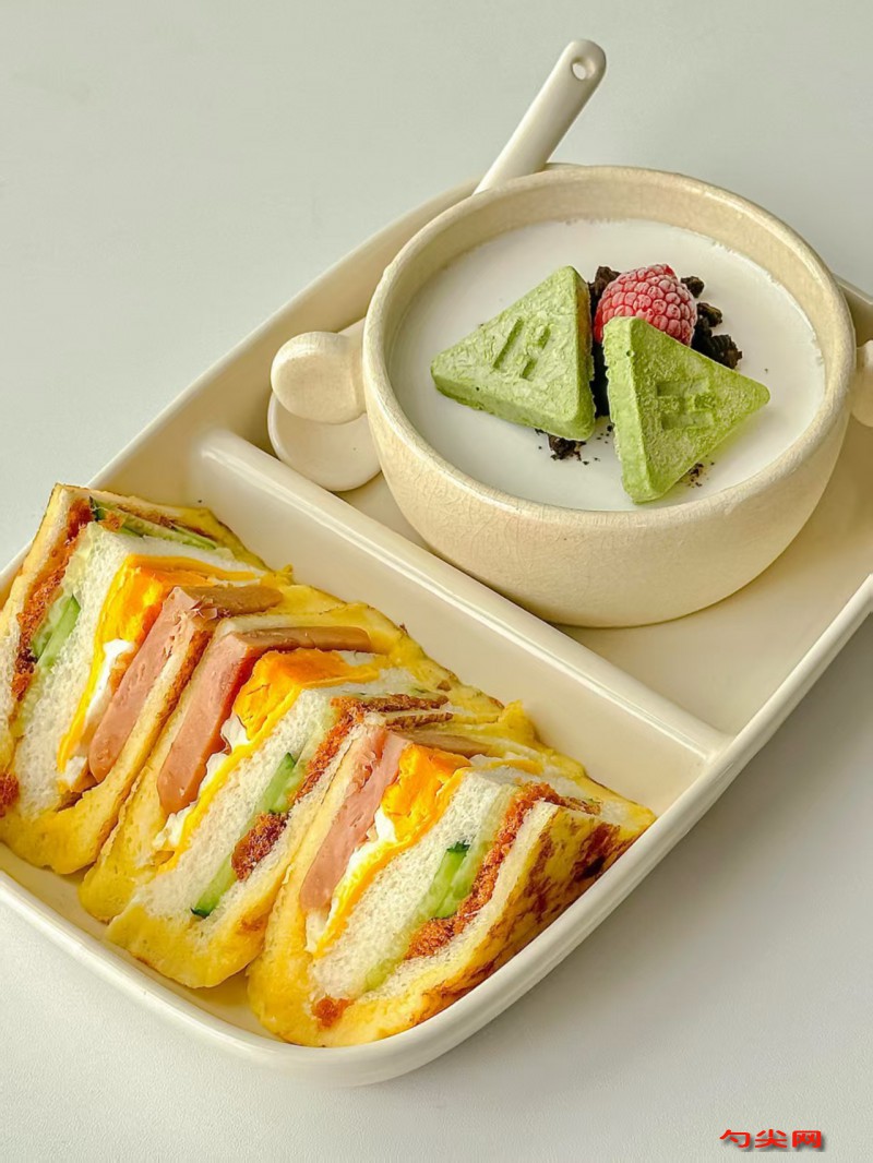 注意事项:在制作午餐肉三明治时,面团的发酵程度对成品的口感有很大影响。要确保面团发酵至两倍大,且内部呈蜂窝状,这样烤出的面饼才会更加松软可口。午餐肉的选用也很关键,应选用肉质鲜美、口感细腻的午餐肉,切片后更容易煎熟且不易散。煎制午餐肉和鸡蛋时,要用小火慢煎,避免外焦里生,同时要注意火候,避免煎焦。生菜和番茄要新鲜,洗净后要沥干水分,以免三明治过于湿润。沙拉酱的用量可根据个人口味适量调整,过多会使三明治过于油腻。