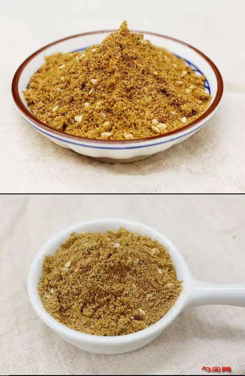 配方:辣椒粉280克、孜然粉200克、熟芝麻150克、花生碎100克、桃酥碎60克、鸡精30克、盐25克、白糖20克、味达蕾901号5克、五香粉15克、大蒜粉12克、洋葱粉10克、胡椒粉8克、小茴香粉8克、香菜籽粉5克