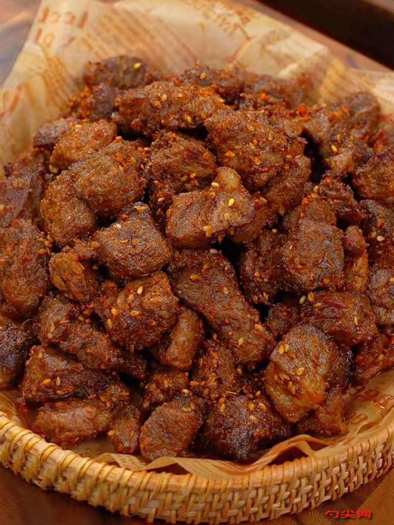 注意事项:配料需用温水完全溶解后使用,确保肉质脆弹有嚼劲,配料分两次加入,腌制阶段6克打基础味,炒制阶段4克增香提鲜,牛肉需顺纹切丁,防止炸制时碎裂,焯水时加入生姜大葱可去腥增香,煮制过程需控制火候,保证牛肉内部熟透,炸制油温控制在170℃,避免外焦内生,炒制辣椒花椒时需用小火,防止焦糊发苦,烘烤环节可去除多余油脂,延长保质期,成品需完全冷却后再包装,防止回潮结块,储存环境需干燥通风,避免阳光直射
