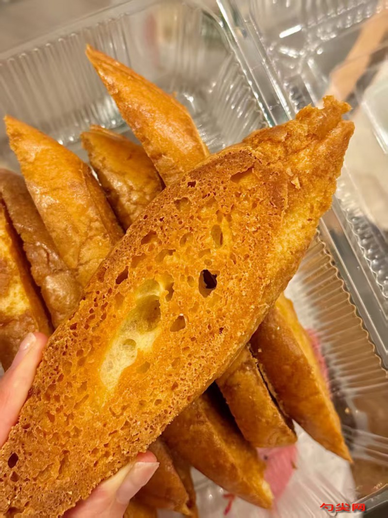 工艺:将500克高筋面粉、2克面欣酥F、4克酵母、3克盐混合均匀,80克细砂糖与120克牛奶加热至40℃溶解后冷却,加入100克鸡蛋液、2克香草精、和溶解后的美久亭Q搅匀,液体材料倒入粉类中搅拌成絮状后揉成光滑面团,加入50克室温软化的黄油揉至完全扩展阶段,面团盖湿布室温发酵至两倍大,发酵期间制作夹心奶油:70克黄油与50克淡奶油隔水加热融化,冷却后冷藏备用,发酵好的面团排气后擀成1厘米厚长方形,用刀切成8厘米×4厘米的矩形片,表面刷蛋液后放入烤盘,二次发酵30分钟至厚度增至1.5厘米,烤箱预热上火180℃、下火160℃,烘烤12分钟至表面金黄,取出冷却后横向切开不切断,夹入冷藏的夹心奶油,表面再刷一层蛋液,复烤5分钟至奶油微融
