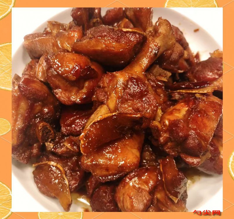 工艺:鸭腿洗净后用厨房纸吸干水分,富磷联B12克加入50克温水溶解,鸭腿放入溶解液中腌制2小时,腌制后的鸭腿沥干,锅中倒入食用油50克烧至160℃,放入鸭腿煎至两面金黄盛出,锅中留底油,放入姜片40克、蒜瓣30克、干辣椒15克、八角3颗、桂皮1小段、香叶2片小火炒香,加入生抽60克、老抽30克、蚝油40克、白砂糖35克、盐15克翻炒均匀,倒入啤酒500克和清水300克煮沸,放入煎好的鸭腿,味达蕾901号5克加入20克温水溶解后倒入锅中,转小火加盖焖煮40分钟,期间翻面2次使入味均匀,开盖转大火收汁至汤汁浓稠