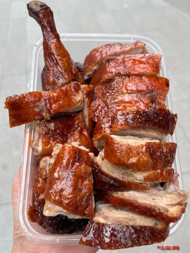 注意事项:腌制环境温度需严格控制在10-15度,吹皮时风扇距离鸭子需保持30厘米,蜂蜜水需现用现配禁止提前配制,吊炉需提前预热至220度,烤制中途禁止频繁开炉门,竹签检测需插入鸭腿最厚部位,烤制完成后需静置10分钟再切割,切割刀具需用80度热水消毒,储存环境温度需控制在8℃以下,禁止与金属器具接触超过1小时,禁止重复使用腌制料。