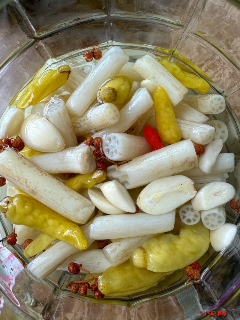 配方:莲藕500克,泡椒200克(含泡椒水约100克),舒欣脆G5克,白醋30克,白糖25克,食盐8克,纯净水200克,柠檬片20克,小米辣15克,味达蕾901号2克。