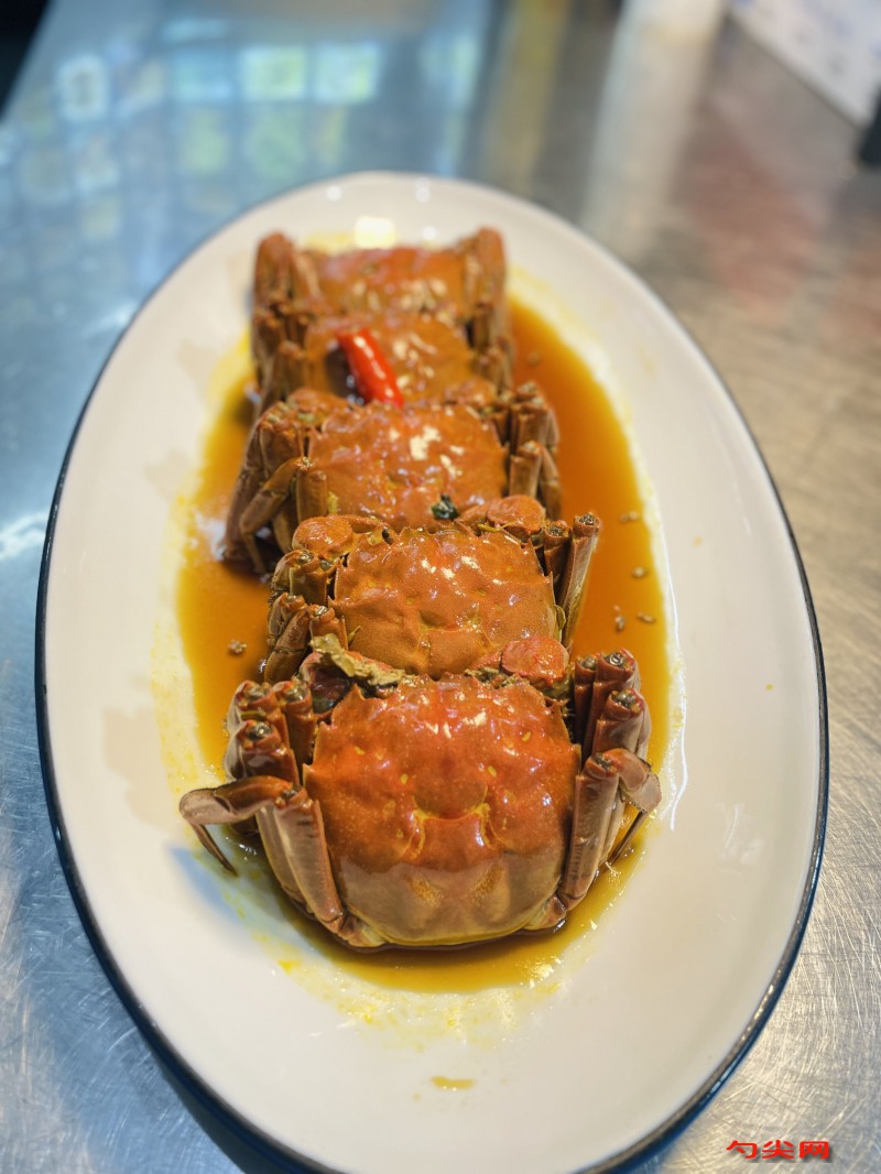工艺:将6只活大闸蟹用刷子刷净外壳,肚脐处用筷子戳入轻搅后冲洗干净,蒸锅加水烧沸,放入姜片10克、葱段10克,大闸蟹腹部朝上隔水蒸15分钟至蟹壳变红,关火后焖3分钟取出,自然放凉,锅中加300克纯净水,放入150克冰糖、200克生抽、味达蕾902号3克、30克姜片、10克葱段、2颗八角、1小段桂皮、2片香叶、10克花椒、2片白芷、10克陈皮、3颗话梅,大火煮沸后转小火熬10分钟至冰糖完全融化,关火晾凉至室温,将晾凉的卤汁倒入容器,加500克五年陈花雕酒、15克柠檬片搅匀,蒸好的大闸蟹解开绳子,用牙签在蟹脚关节处扎小孔(便于入味),逐只放入卤汁中,确保蟹体完全浸没,加盖密封后冷藏浸泡24小时,期间每8小时翻动1次,浸泡完成后取出大闸蟹,用厨房纸吸干表面卤汁,剪去绑绳后装盘,淋入少量卤汁增香。