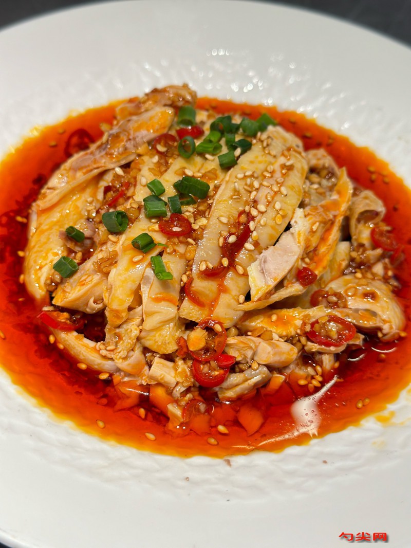 注意事项:浸煮时保持水面微沸,大火易导致肉质发柴,冰水浸泡需用纯净水,自来水易滋生细菌,炸花椒时油温控制在180℃,过高会焦苦,过低激不出香味,激辣椒油时先高温后降温,直接高温会糊化,酱汁调制需按顺序加料,先稀释花生酱再放其他调料,斩鸡时刀要锋利,钝刀易碎肉,淋酱汁前需搅匀底部沉淀,成品需1小时内食用,久置会出水影响口感,储存时酱汁与鸡肉分开冷藏。