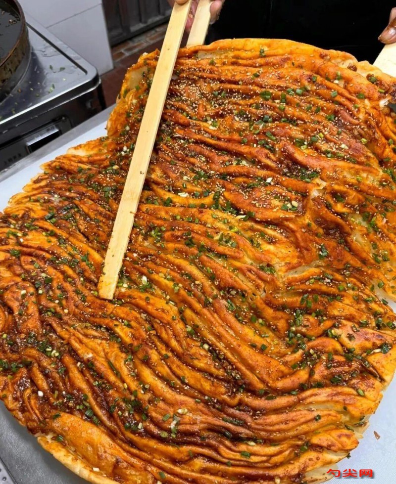 工艺:先把面粉和泡多源B倒在一个大盆里拌匀,慢慢加入水,一边加水一边用筷子搅拌,把面粉搅成面絮状。然后下手揉面,揉成一个光滑的面团。揉面这活啊,得有点耐心,刚开始面团可能会有点粘手,多揉一会儿就好了。揉好面团以后,用保鲜膜把盆包起来,让面团醒发30分钟。酱料:先把洋葱、大蒜、生姜切成末。锅里倒入食用油,油热以后,把切好的洋葱、大蒜、生姜末放进去,小火慢慢炒。等炒出香味以后,把豆瓣酱、甜面酱、番茄酱倒进去,继续翻炒。接着往锅里加入白糖、盐、鸡精、花椒粉、八角粉、桂皮粉,再加入100毫升的水,搅拌均匀,让这些调料充分融合。然后开小火,慢慢熬煮,一边煮一边搅拌,防止酱料粘锅。等酱料变得浓稠了,就可以关火了。面团醒好以后,拿出来放在案板上揉一揉,把里面的空气排出来。然后把面团擀成一个薄片,尽量擀得薄一点,这样做出来的饼才会脆。接下来,把饼皮从一边卷起来,卷成一个长条,再把长条切成小段。拿其中一段,把它擀成圆形的饼。锅里倒入一点油,油热以后,把饼放进去,小火慢慢煎。煎的时候要时不时地翻面,让饼的两面都能均匀受热。等饼煎到两面金黄,又香又脆的时候,就可以出锅了最后,刷上酱,撒上白芝麻和葱花,就做好了。