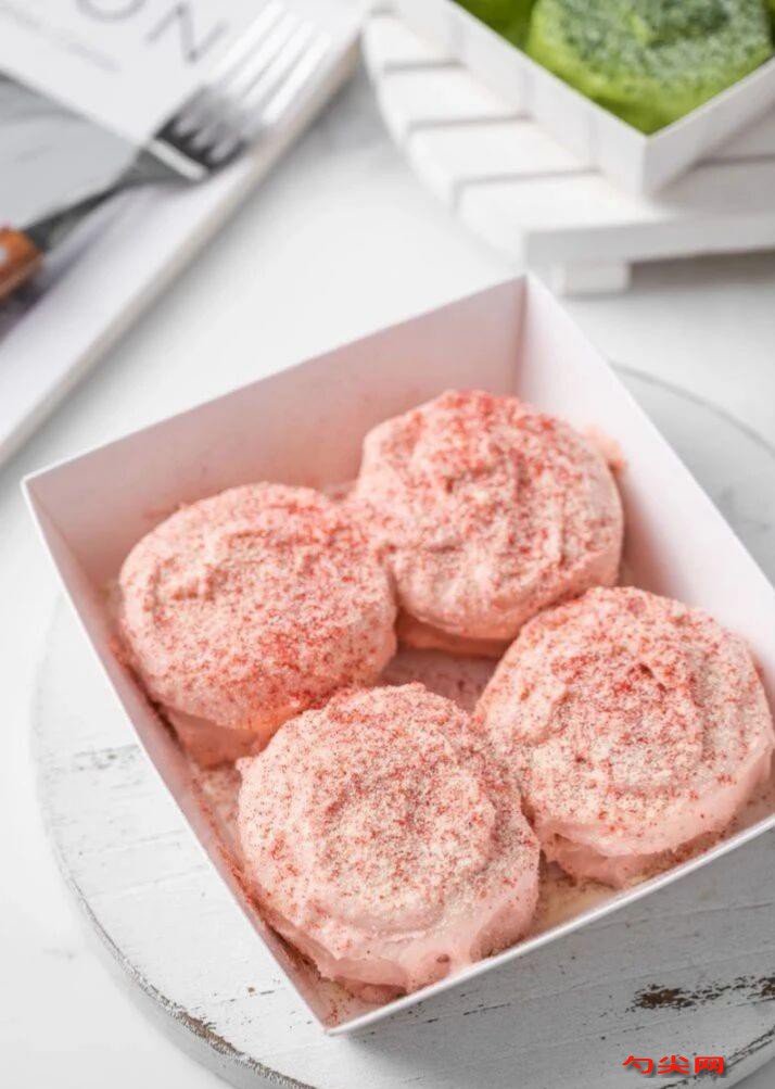工艺流程:玉米油加热后离火,立即倒入低粉和泡多源G(提前拌匀)搅拌至无干粉;牛奶需常温或微温,避免温差过大导致面糊结块;蛋白打发时,砂糖需完全融化,避免影响蛋白稳定性;翻拌面糊时采用“切拌法”,避免消泡;烘烤温度建议上火160℃、下火150℃,中层烤26分钟,最后3分钟开启热风循环使表面均匀上色。草莓酱:草莓果茸与酒酿均质后,加入柠檬汁搅拌均匀,加热至40℃;砂糖与佳多美D混合物缓慢倒入,边倒边搅拌,避免结块;小火煮沸后持续搅拌1分钟,确保果胶完全溶解。奶油馅材料混合后,低速打发至8分发(硬挺状);蛋糕胚冷却后脱模,用模具刻出圆形片;一层蛋糕胚+一层奶油馅+一层蛋糕胚,表面抹薄奶油;撒奶粉与树莓粉装饰,冷藏定型30分钟后食用。