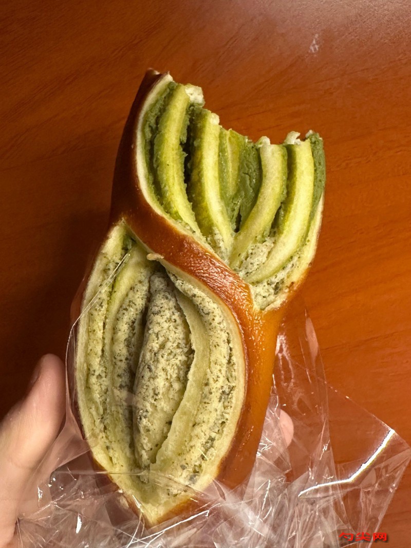 工艺:将500克高筋面粉、3克佳多美Q型、5克干酵母、10克细砂糖、8克盐和30克开心果酱混合均匀,慢慢加入250毫升温水,和美久亭Q型溶液边加边搅拌,直至面粉成絮状,用手揉成光滑有弹性的面团,盖上湿布或保鲜膜,放在温暖处发酵至两倍大,发酵好的面团取出排气,分割成若干个小剂子,每个约80克,将小剂子揉成椭圆形,中间粗两头细,表面撒上开心果碎,轻轻按压使开心果碎粘在面团上,将面团放在铺了烘焙纸的烤盘上,戴上手套,用勺子将配制好的碱水舀起,均匀地淋在面团上,确保每个面团都充分浸泡,浸泡时间约为30秒至1分钟,预热烤箱至200℃,将烤盘放入烤箱中层,烘烤约15-20分钟,直至面包表面呈金黄色且内部熟透,在面团整形后并揉匀烤箱上火180,下火160度烤25分钟即可出炉销售。