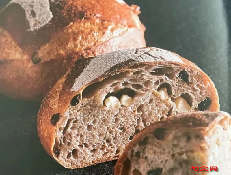 工艺流程:1.中种:将葡萄干用清水浸泡至软化,沥干水分备用。在搅拌缸中依次加入有机石磨面粉、蜂蜜、奥本惠法国粉、葡萄菌水、浸泡后的葡萄干、水、核桃碎、低糖干酵母和星野蜂蜜种。低速搅拌至无干粉状态,转中速搅拌至面团光滑有弹性(约8-10分钟)。将面团滚圆,放入发酵盒中,室温(约25℃)发酵约2小时,至面团膨胀至原体积的2倍大。发酵完成后,将面团放入冰箱(约4℃)冷藏发酵12-16小时,使面团风味更浓郁。2.主面团:取出冷藏发酵好的中种面团,撕成小块放入搅拌缸。加入法国老面、佳多美Q型,水、奥本惠法国粉和倍田4号,低速搅拌至混合均匀。转中速搅拌至面团表面光滑,能拉出薄膜。加入软化的奶油乳酪、黑胡椒和帕玛森乳酪粉,低速搅拌至完全融合。将面团滚圆,放入发酵盒中,室温(约25℃)松弛约30分钟。3.将松弛好的面团分割成6等份,滚圆后松弛15分钟。取一份面团,擀成圆形或椭圆形,包入40克内馅(奶油乳酪、帕玛森乳酪碎和黑胡椒的混合物)。将面团收口捏紧,表面撒少许帕玛森乳酪粉和黑胡椒作为装饰。将整形好的面团放入烤盘,保持间距,室温(约25℃)最后发酵约40-50分钟,至面团膨胀至原体积的1.5倍大。4.预热烤箱至上火220℃、下火200℃。在面团表面划几刀,帮助烘烤时膨胀。将烤盘放入烤箱中层,烘烤约15-18分钟,至表面金黄酥脆。烘烤完成后,取出面包,轻震烤盘排出热气,放置在晾网上冷却。