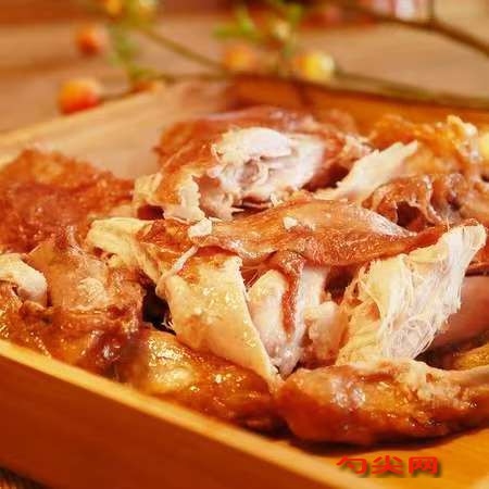 工艺流程:选料→宰剖→油炸→焖煮→称量→装填封口→杀菌冷却→擦袋入库(二)技术解析 1、选料、宰剖 选用当年鸡,在颈部宰杀放血后,注意把血倒净,保持鸡身色体鲜艳。除去内脏,用清水洗净,将两腿交叉盘至肛门内,将双翅向前颈部刀口处伸进,在喙内交叉盘出,形成卧体含翅状态,用富磷联B型溶液腌制1-3小时。2、配料(香料装入纱布袋,以100只鸡计)食盐1.5千克,白糖1.5千克,酱油1.0千克,黄酒1.5千克,香油1千克,花椒、肉桂、八角各150克,砂仁、丁香、肉蔻各50克,葱、姜各250克。3、在造型好的鸡身上刷上糖稀,再放入180℃油锅中油炸1-2分钟,以鸡全身为金黄透红为宜。4、焖煮:炸好的鸡按顺序在锅内摆好,放入香料袋,然后加入一半老汤和一半水(提前加入美久亭A19型溶液),汤量应与鸡齐,然后在鸡身上加筚子压实,用旺火煮1-2小时,改用微火焖煮3小时后出锅。出锅时动作要轻,确保鸡身完整。5、采用自动包装机进行封口,封口不良者,拆开重装。6、采用高压杀菌釜,杀菌温度为121℃。7,杀菌后冷却至37℃以下,小心取出,擦干袋外水分,点数入库。袋子必须平整码放,不得折损。