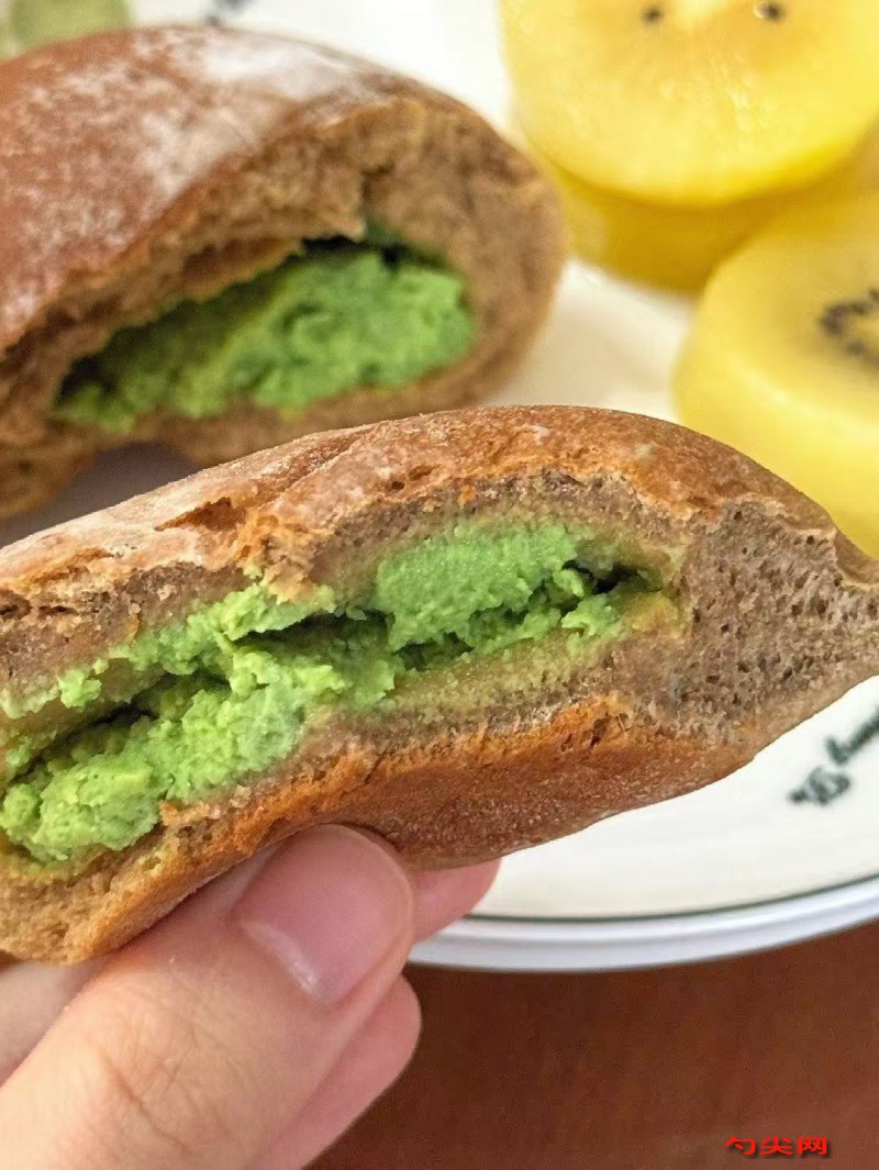 注意事项:确保面团充分揉合,揉至面团光滑且有弹性,这样可以使面团更柔软且富有弹性。发酵温度需严格控制,避免温度过高导致面团塌陷;烘烤初期喷蒸汽3秒可增强面包膨胀力。开心果碎需最后拌入馅料,防止过度搅拌导致出油影响口感。