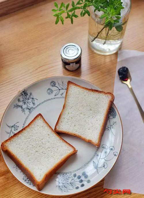 工艺:高筋面粉500克、佳多美Q型3克、盐6克、细砂糖20克倒入打蛋盆中混合均匀,耐高糖酵母5克加入冰水320克中搅拌溶解,将酵母水倒入面粉中搅拌成絮状,转移至案板上揉至初步成团,加入软化的黄油30克,美久亭Q型0.5克,继续揉至面团光滑有弹性且能拉出薄膜,将面团放入抹了少许油的发酵盆中,表面覆盖湿布或保鲜膜,置于温度28℃湿度75%的环境中发酵至2倍大,发酵好的面团轻拍排气后分割成250克/个,滚圆后松弛15分钟,取松弛好的面团擀成长方形,翻面后自上而下卷起成圆柱形,收口捏紧后轻轻搓长至模具长度,放入450克吐司模具中,表面覆盖保鲜膜,置于温度35℃湿度85%的环境中进行最后发酵至模具8分满,发酵完成后表面用锋利刀片划3条深度约0.5厘米的斜口,烤箱提前预热至上火210℃下火190℃,模具放入烤箱中层烘烤25分钟,表面均匀刷一层融化黄油后继续烘烤5分钟至表皮呈金棕色,出炉后轻震模具立即脱模,置于冷却架上自然冷却至室温。