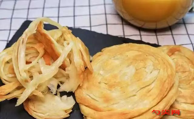 注意事项:温水温度控制在35℃左右,避免过高导致面团黏手或过低影响醒发。划条时刀口要均匀,卷制时力度适中,避免断条或层次不清晰。烙制时火候不宜过大,全程小火慢烙,确保内部熟透且外皮酥脆。起酥油可用花生油替代,但酥脆度会略有差异。