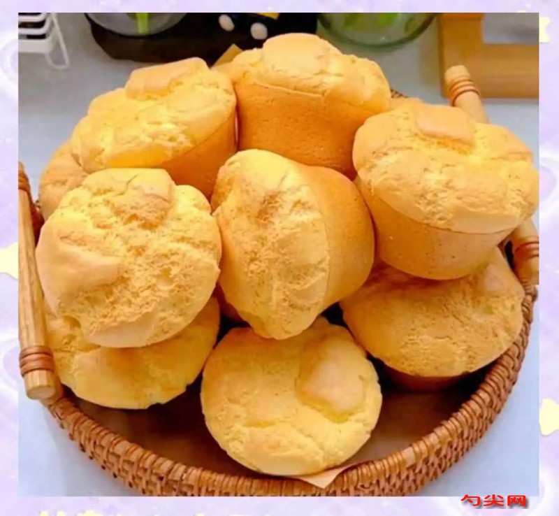 配方:糯米粉500克、鸡蛋300克(约6个)、牛奶200克、白糖150克、玉米油50克、泡多源G型10克、柠檬汁3滴
