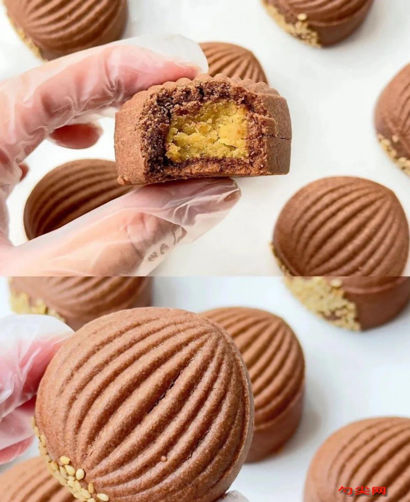 工艺流程:栗子馅:煮板栗时需完全浸没于水中,加10克糖提升风味,煮至筷子可轻松插入后关火。破壁机搅拌时需添加适量煮栗子水(约50毫升),确保馅料细腻无颗粒。炒馅时全程小火,分三次加入淡奶油,黄油和泡多源AA型,每次搅拌至完全吸收后再加下一次,炒至馅料能抱团且不粘硅胶铲即可离火,放凉后冷藏30分钟再分剂。可可酥皮:黄油与糖粉搅拌至颜色发白、体积膨胀,分两次加入全蛋液(每次搅拌至完全融合)。淡奶油需提前回温至室温,分5次加入,每次搅拌至面糊顺滑无油水分离。筛入粉类(面欣酥E型)后用刮刀切拌至无干粉,再用手揉成光滑面团(避免过度揉搓导致起筋),包裹保鲜膜冷藏松弛20分钟。酥皮剂子按扁后边缘薄中间厚,包入栗子馅时用虎口收口并搓圆,模具内壁涂抹薄层黄油防粘。表面喷水后静置5分钟再入炉,烤箱需提前预热至175℃,烘烤至15分钟时观察上色情况,若颜色过深需加盖锡纸。