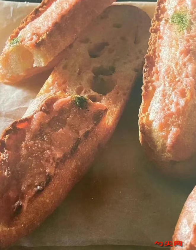 注意事项:液种需充分发酵至内部呈蜂窝状,若发酵不足会导致面团膨胀力弱;若过度发酵会酸味过重。主面团发酵时避免温度过高,否则酵母活性过强会导致组织粗糙;盐与酵母需分开放置。炙烧步骤需在面包冷却后进行,避免高温使面包变干;若没有喷枪可省略,直接食用。