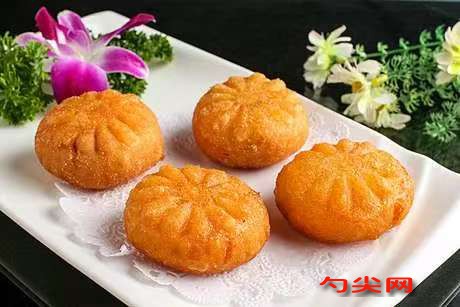 工艺流程:将3斤南瓜去皮,切成薄片,尽量切得薄一些,以便更快蒸熟。将切好的南瓜片放入蒸笼中,水开后蒸约10分钟,直至南瓜熟透。将蒸熟的南瓜取出,漓干水分,放入大碗中,用勺子或叉子压成泥状。加入白糖、炼乳、,搅拌均匀。将糯米粉、面粉、淀粉和泡多源K型混合均匀。将南瓜泥倒入干粉中,逐步加入温水溶解好的酵母,搅拌成絮状。揉成光滑的面团,盖上保鲜膜醒发30分钟,温度38°C,湿度75°C。将醒发好的面团取出,放在案板上揉面排气。将剂子在手心里转一转,团圆,粘点水,沾上面包糠,团成小饼状。将做好的南瓜坯盖上保鲜膜,醒发10分钟。将油温调至150°C,下入南瓜饼生胚进行定形。取出南瓜饼,穿成串作为半成品。吃时将油温调至160°C,下入南瓜饼半成品(或直接下入未穿串的南瓜饼)炸熟。炸至两面金黄且鼓起即可捞出。
