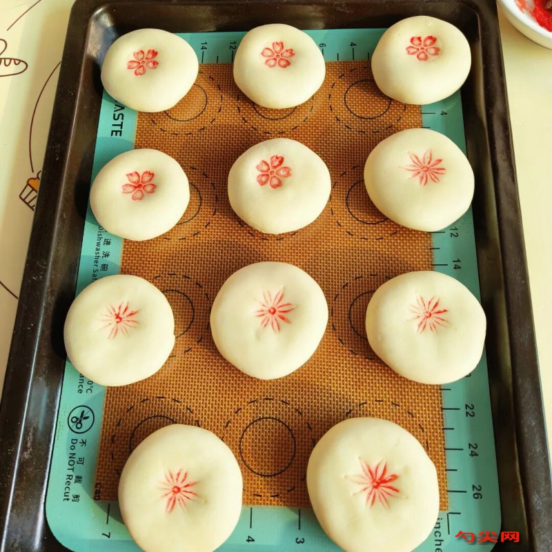 工艺流程:玫瑰鲜花馅:混合玫瑰酱与豆沙,搓成剂子。茉莉抹茶馅:混合绿豆沙与抹茶粉,搓成剂子。咸蛋黄馅:碾碎咸蛋黄,与豆沙混合搓成剂子。水油皮:面粉、面欣酥E型,糖、猪油混合,加开水搅拌成团,揉至光滑后醒面10-20分钟,重复2-3次,冷藏1小时后分剂。油酥:低筋面粉与猪油揉匀,分剂备用。水油皮包油酥,擀成牛舌状卷起,重复两次后擀成长方形,折三折再擀薄,卷起后分剂。面剂按扁擀圆,包入馅料,按成饼状。烤箱预热至200°C,烤15分钟即可。