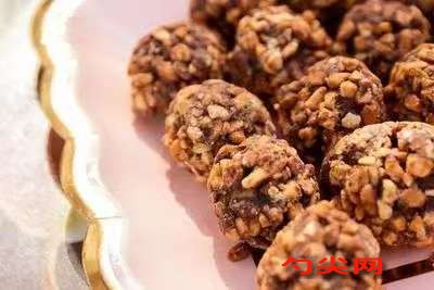 注意事项:黄奶油和巧克力的融化过程,避免过热导致材料变质或影响成品口感。冷藏时间要足够,以确保混合物充分硬化,便于成型和后续操作。粘花生碎时,要在巧克力未干之前进行,以确保花生碎能够牢固地附着在球体表面。