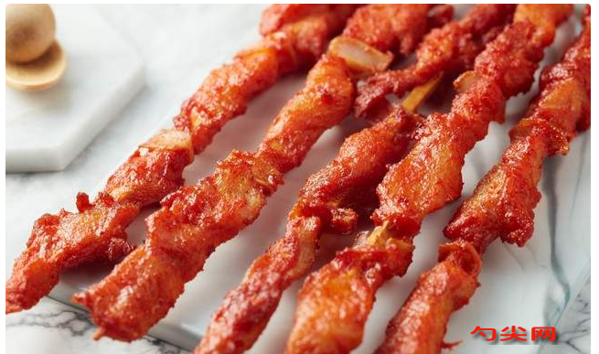 工艺:1)处理鸡肉鸡肉切成2cm左右小块,带脆骨最好。清水洗干净,沥干水分。2)调腌料所有调料放一起搅匀,化成料汁。3)腌制料汁倒入鸡肉中,抓匀。戴手套反复抓揉3分钟,让肉吸满料汁。密封放入冰箱冷藏:最少腌4小时,最佳腌8–12小时4)穿串每块肉带一点脆骨,口感最好。一串穿5–6块肉,大小均匀。①油炸油温:160℃时间:炸3分钟升高到180℃复炸20秒更脆更香②烤箱/商用烤炉上下火200℃烤12–15分钟中途翻面一次,刷一层油③铁板煎中小火煎5分钟两面金黄即可五、出餐撒料出锅后撒:孜然+辣椒面+白芝麻+少许椒盐。