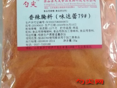 商品名:味达蕾79#  产品名称:香辣腌料   本品完全按照《食品安全国家标准 食品添加剂使用标准GB2760》及补充规定的品种、应用分类、使用范围、最大使用量、残留量等科学组方,并且按照《食品安全国家标准 食品用香精GB=30616-2014》精心配制而成。本品已经通过食品生产许可,保障食品安全。用户按照本说明的用法用量生产制作的各类食品既不会超标也不会超量。