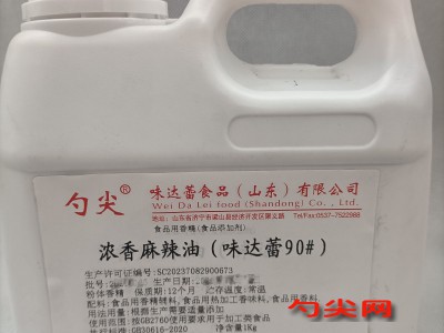 ★商品名: 味达蕾90# 产品名称:浓香麻辣油 型号: 本品按照《食品安全国家标准 食品添加剂使用标准GB2760》及补充规定的品种、应用分类、使用范围、最大使用量、残留量等科学组方,并且按照《食品安全国家标准 食品用香精GB 30616-2014》精心配制而成。本品已经通过食品生产许可,保障食品安全。用户按照本说明的用法用量生产制作的预制肉制品(食品分类号:08.02)、熟肉制品(食品分类号:08.03)、复合调味料(食品分类号:12.10)既不会超标也不会超量。