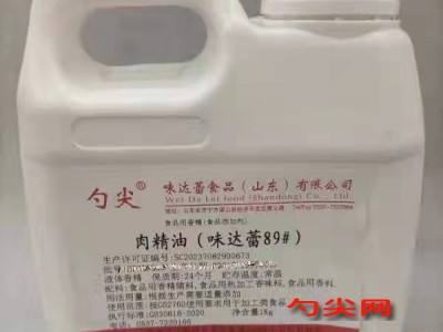 ★商品名: 味达蕾89# 产品名称:肉精油 型号: 本品按照《食品安全国家标准 食品添加剂使用标准GB2760》及补充规定的品种、应用分类、使用范围、最大使用量、残留量等科学组方,并且按照《食品安全国家标准 食品用香精GB 30616-2014》精心配制而成。本品已经通过食品生产许可,保障食品安全。用户按照本说明的用法用量生产制作的预制肉制品(食品分类号:08.02)、熟肉制品(食品分类号:08.03)、复合调味料(食品分类号:12.10)既不会超标也不会超量。