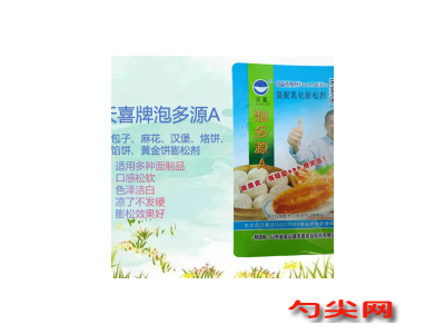 ★功能作用:采用 〔泡多源A型〕加工制作的油条、麻花、汉堡、烙饼、烤饼、馅饼、黄金饼等油炸面制品、焙烤食品膨松个大饱满、外酥里软,凉了不发硬;采用 〔泡多源A型〕加工制作的包子、馒头、花卷、白吉馍、口福饼等发酵面制品膨松个大饱满、口感松软、色泽洁白、凉了不发硬。〔泡多源A型〕不含明矾、不含铝,安全合法更健康!注:做筷子挑油条用泡多源H型。〔泡多源A型〕还可用于葱香火腿鸡蛋泡、气布袋、松软肉火烧、油馍头、千层肉饼、蜜豆卷、葱油饼、盘阳饼、破酥包、坚果花卷馒头、芝麻大烧饼、糖油饼、发面单饼、铁板芝麻烧饼、无铝油条、老式肉盒、老式菜盒、发面灌汤小笼包、发面小笼包、甜烧饼、梅干菜烧饼、烤淄C烧饼、油酥火烧、铁板里脊夹饼、酱香饼、松软烧烤饼、发面肉包子、压缩馍、绿豆饼、鲜肉小锅盔、松软麻酱烧饼、肉夹馍、半发面G不理包子、死面葱油饼、软麻花、烤包子、椒盐小花卷、肉沫鸡蛋饼、软面馅饼、发面油饼、烤夹饼、夹饼、龙卷饼、椒盐千层烧饼、小花卷、爆浆酸奶大麻花、小笼蒸包、软皮泡芙、刀切馒头、喜饼、“水光肌”馒头、葱油烤饼、糖酥馍馍、椰蓉卷、死面葱油饼、豆渣松饼、奶黄包、俄罗斯大饼、豆渣馒头、豆渣薄饼、老式面包、奶香锅巴、酱肉包、手工发面包子、松软千层烤饼、南瓜饼、枣花糕、蜜豆卷、黄金饼、发面千层饼、开花馒头、锅贴馒头、锅盔、发面煎饺、发面灌汤包、千层馒头、甜甜圈、韭菜盒子、鸡蛋灌饼、沙琪玛、发面蟹黄包、红枣开花馒头、豆沙馅麻花、韭菜馅饼、驴肉火烧、软麻花、油炸汉堡、口福饼、无糖松软咸麻花、无糖甜软麻花、蛋奶饼、白吉馍、肉夹馍、布袋馍、口袋饼、披萨饼、羊肉壮馍、肉盒、蔬菜夹心油条、油炸面蛤蟆、夹馅油条、烙饼、韭菜饼、火龙果油条、果蔬彩色油条、小笼包、台湾奶香软麻花、葱花饼、酱肉包、牛肉包子等。