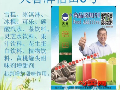 ★功能作用: [倍田6型]用于雪糕、冰淇淋、奶茶、冰棍、可乐、碳酸汽水、茶饮料、灵芝水饮料、果汁饮料、花生蛋白饮料、植物饮料、黄桃罐头等各种冷冻饮品、水果罐头、饼干、各种饮料类,起到增加甜味作用。[倍田6型]特别适合制作无糖饮料。[倍田6型]还可用于无糖苹果汁、钵仔糕等。