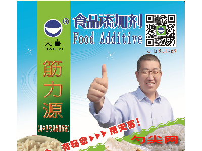 ★商品名:天喜牌筋力源A06型 产品名称:筋力源牌复配酸度调节增稠剂1 型号:JLY-A06 本品按照《食品安全国家标准 食品添加剂使用标准GB2760》及补充规定的品种、应用分类、使用范围、最大使用量、残留量等科学组方,并且按照《食品安全国家标准 复配食品添加剂通则GB26687》精心配制而成。本品已经通过食品生产许可,保障食品安全。用户按照本说明的用法用量生产制作的方便米面制品(食品分类号:06.07)、冷冻米面制品(食品分类号:06.08)既不会超标也不会超量。