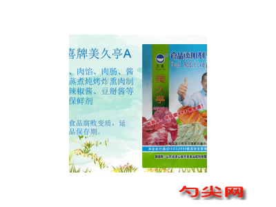 功能作用:〔美久亭A型〕用于 肉丸、肉肠、酱腌卤蒸煮炖烤炸熏肉制品等熟制肉制品,以及辣椒酱、沙拉酱、蛋黄酱、咖喱膏、牛肉酱、猪肉酱、番茄沙司、西瓜酱、豆掰酱等固体调味料、半固体调味料、液体调味料、复合调味料,可以调节食品PH值,有效抑制食品中微生物的繁殖,防止或延缓食品成分氧化、分解变质,防止食品腐败变质,延长食品保存期,起到防腐保鲜作用。〔美久亭A型〕还可用于肉粉肠、卤猪蹄、无磷卤鸡爪、油炸萝卜肉丸子、香菇牛肉酱、无磷小酥肉、猪皮冻、油炸大酥肉、四喜丸子、豆渣鸡肉酱、豆渣猪肉酱、炖猪蹄、猪肉肠、蒸水晶猪皮冻、卤猪皮卷、番茄酱、腐竹腐皮肉卷、腊肉肠、脆皮肠、玉米脆皮肠、坛子鸡、荷叶叫花鸡、香草竹笼鸡、卤鸭舌、五香烧鸡、麻辣鸭翅、卤鸭锁骨、卤羊蹄、酱卤鸭翅根、肉粉肠、卤猪脸肉、五香卤鸭腿、麻辣鸭肠、五香酱肘子、速冻猪肉小酥肉、速冻鸡肉小酥肉、卤鸭掌、卤鸭胗、卤猪舌、卤猪尾巴、卤猪心、烤猪脆骨、蔬菜皮冻肠、盐水鸭、卤猪头、卤酱香猪耳朵、水晶肴肉、水晶猪头肉焖子、油皮卷煎、熏肉卷、松花鸡腿、麻辣鸭头、黄豆猪蹄、炸鸡架、油炸鸡叉骨、卤猪耳、柠檬无骨鸡爪、猪肝炖煮、卤鸽子、油炸鸽子、卤猪肘、卤鸭脖、泡椒猪皮、泡椒凤爪、卤鸡爪、猪肉脯、牛肉香辣酱、雪花重组肉、雪花鸡排、烤鸽子、水发卤制鸡胗、水发猪大肠、红烧驴肉、青辣椒酱、油炸鸡排、五香酱卤牛肉、香辣肉酱、牛肉丸、羊肉丸、猪肉丸、鸡肉丸、猪排重组肉、鸡肉玉米香肠、猪肉香肠、烤鸭、烤肠、烧鸡、粉肚、红烧狮子头、鱼肉丸、速冻虾丸、鸡肉肠、猪肉肠、哈尔滨红肠、脱骨烧鸡、酱牛肉、卤新鲜牛肚、卤牛蹄等熟肉制品、复合调味料,起到防腐保鲜作用。