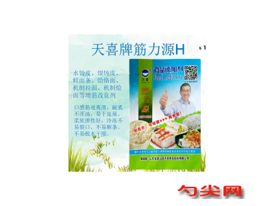 ★商品名:天喜牌筋力源H型 产品名称:筋力源牌复配酸度调节水分保持剂 型号:JLY-H 本品按照《食品安全国家标准 食品添加剂使用标准GB2760》及补充规定的品种、应用分类、使用范围、最大使用量、残留量等科学组方,并且按照《食品安全国家标准 复配食品添加剂通则GB26687》精心配制而成。本品已经通过食品生产许可,保障食品安全。用户按照本说明的用法用量生产制作的生湿面制品(食品分类号:06.03.02.01)、方便米面制品(食品分类号:06.07)、冷冻米面制品(06.08)既不会超标也不会超量。