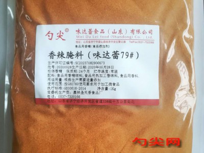 ★商品名:味达蕾79# 产品名称:香辣腌料 本品按照《食品安全国家标准 食品添加剂使用标准GB2760》及补充规定的品种、应用分类、使用范围、最大使用量、残留量等科学组方,并且按照《食品安全国家标准 食品用香精GB=30616-2014》精心配制而成。本品已经通过食品生产许可,保障食品安全。用户按照本说明的用法用量生产制作的各类食品既不会超标也不会超量。