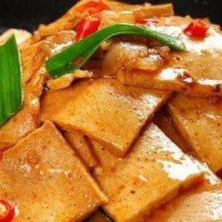 ②.水豆腐、嫩豆腐、老豆腐、豆腐干、豆腐皮、豆腐丝等豆腐制品做法:(以10斤干豆为例)1.泡豆:选用豆脐(或称豆眉)色浅、含油量低、粒大皮薄、粒重饱满、表皮无皱而有光泽的大豆10斤。将大豆洗净,在春秋季水温10℃—20℃时,浸泡12小时—18小时;夏季水温30℃左右;浸泡6小时—8小时(每24小时换水);冬季水温5℃,浸泡约24小时。水质以纯水、软水为佳。用水量一般以豆水重量比1:3为好,浸泡好的大豆约为原料干豆重量的2.2-3倍。泡好的豆要求豆瓣饱满,裂开一小线。但浸泡时间如果过长,会影响出浆率。2.磨浆:一般选用能进行浆渣自动分离的磨浆机,粗磨、细磨共2次--3次,尽可能提高大豆蛋白的抽提率。一般做老豆腐、豆腐干、豆腐皮、豆腐丝时水与干豆的比例是3-4:1,做嫩豆腐时水与干豆的比例是6-10:1。第一次粗磨时加水量为总加水量的30%,第二次调节磨浆机螺旋进行细磨,加水量为30%,第三次的加水量为40%,尽可能地把豆渣里面的浆冲洗出来。磨好的渣应手感细腻无颗粒。3.煮浆:把磨好的浆放在不锈钢制的煮浆桶里,用蒸气或大火将浆煮至60℃-70℃时放入约0.3%的食用消泡剂,把加热过程中产生的泡完全消掉为止。然后加入豆浆的0.03-0.05%筋力源N型,继续加热把浆至90-95℃(温度过高影响凝固,出品率也低),微沸保持3分钟—5分钟把浆煮透。4.冷却:把煮好的豆浆倒入点浆桶或缸中进行冷却,降温至75℃。5.点浆:以10斤大豆计算,称取0.25-0.35斤豆立固A型,用少量冷开水溶解。然后点入降温后的豆浆,上下快速翻动豆浆至出现鸡蛋般疙瘩即可停止,盖好桶盖静止15-20分钟既成豆腐脑。6.成型:将凝固好的豆腐脑划开,倒入压榨机进行压榨成豆腐,一般10斤干豆加工成豆腐45斤左右为嫩豆腐,加工成豆腐30斤左右为老豆腐或或水豆腐;泼浆压榨加工成15斤左右为豆腐皮、豆腐丝或豆腐干。
