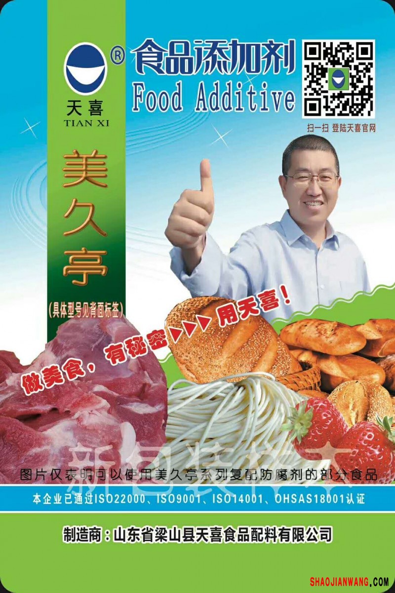 ★商品名:天喜牌美久亭W 产品名称:美久亭牌复配防腐剂9 型号:MJT-W 本品完全按照《食品安全国家标准 食品添加剂使用标准GB2760》及补充规定的品种、应用分类、使用范围、最大使用量、残留量等科学组方,并且按照《食品安全国家标准 复配食品添加剂通则GB26687》精心配制而成。本品已经通过食品生产许可,保障食品安全。用户按照本说明的用法用量生产制作的水果、蔬菜(包括块根类)、豆类、食用菌、藻类、坚果以及籽类等(表A3中例外的食品除外)(食品分类号:04.0);小麦粉及其制品(表A3中例外的食品除外)(食品分类号:06.03);杂粮制品(食品分类号:06.04.02);肉及肉制品(表A3中例外的食品除外)(食品分类号:08.0);调味品(表A3中例外的食品除外)(食品分类号:12.0)既不会超标也不会超量。