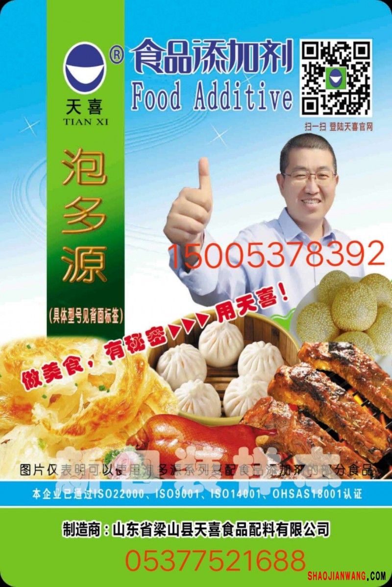 ★商品名:天喜牌泡多源F型 产品名称:泡多源牌复配熟制肉制品凝固膨松剂 型号:PDY-F 本品完全按照《食品安全国家标准 食品添加剂使用标准GB2760》及补充规定的品种、应用分类、使用范围、最大使用量、残留量等科学组方,并且按照《食品安全国家标准 复配食品添加剂通则GB26687》精心配制而成。本品已经通过食品生产许可,保障食品安全。用户按照本说明的用法用量生产制作的熟制肉制品(食品分类号:08.03)、预制肉制品(食品分类号:08.02)既不会超标也不会超量。