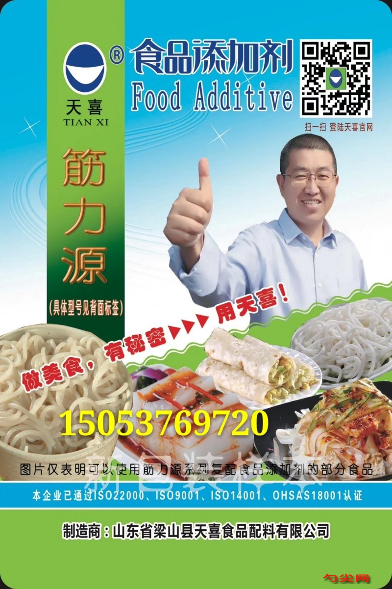 ★商品名:天喜牌筋力源N型 产品名称:筋力源牌复配豆类制品乳化增稠剂 型号:JLY-N 本品完全按照《食品安全国家标准 食品添加剂使用标准GB2760》及补充规定的品种、应用分类、使用范围、最大使用量、残留量等科学组方,并且按照《食品安全国家标准 复配食品添加剂通则GB26687》精心配制而成。本品已经通过食品生产许可,保障食品安全。用户按照本说明的用法用量生产制作的豆类制品(食品分类号:04.04)、膨化食品(食品分类号:16.06);其他(食品分类号:16.07)既不会超标也不会超量。