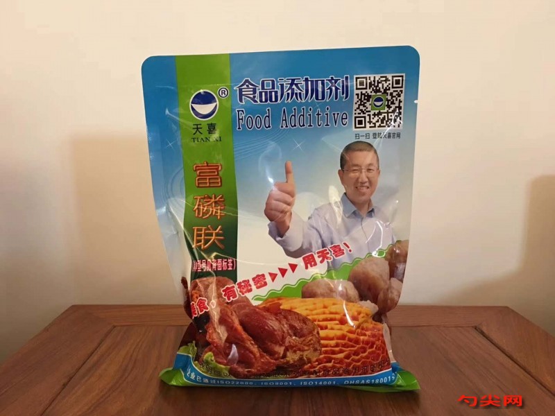 商品名:天喜牌富磷联B型 型号:FLL-B 本品完全按照《食品安全国家标准 食品添加剂使用标准GB2760-2014》及补充规定的品种、应用分类、使用范围、最大使用量、残留量等科学组方,并且按照《食品安全国家标准 复配食品添加剂通则GB26687-2011》精心配制而成。本品已经通过山东省食品药品监督管理局生产许可,保障食品安全。用户按照本说明的用法用量生产制作的预制肉制品(食品分类号:08.02);熟制肉制品(食品分类号:08.03);冷冻鱼糜制品(食品分类号:09.02.03)既不会超标也不会超量。