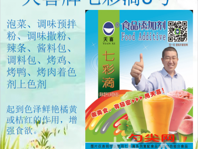 ★商品名:天喜牌七彩滴8型 产品名称:七彩滴牌复配着色剂8 型号:QCD-8 本品按照《食品安全国家标准 食品添加剂使用标准GB2760》及补充规定的品种、应用分类、使用范围、最大使用量、残留量等科学组方,并且按照《食品安全国家标准 复配食品添加剂通则GB26687》精心配制而成。本品已经通过食品生产许可,保障食品安全。用户按照本说明的用法用量生产制作的腌渍的蔬菜(食品分类号:04.02.02.03)、熟制坚果与籽类(仅限油炸坚果与籽类)(食品分类号:04.05.02.01)、方便米面制品(食品分类号:06.07)、粮食制品馅料(食品分类号:06.10)、饼干(食品分类号:07.03)、熟肉制品(仅限禽肉熟制品)(食品分类号:08.03)、调味品(食品分类号:12.01盐及代盐制品除外) (食品分类号:12.0)既不会超标也不会超量。