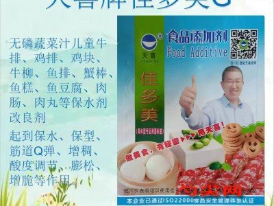 ★功能作用:〔佳多美G型〕用于无磷蔬菜汁儿童牛排、烤肠、脆肠、玉米肠、鸡排、猪排、羊肉卷、牛肉卷、卤牛肉、鱼丸、膨化面包糠、肉饼、肉馅、雪花糠、面包糠、面包屑、鸡块、牛柳、鱼排、蟹棒、鱼糕、鱼豆腐、肉肠、肉丸、面糊、辣条等无磷肉制品、水产品、各类食品,起到保水、保型、筋道Q弹、增稠、酸度调节、膨松、增脆等作用。〔佳多美G型〕比较适合高出品率的无磷肉制品。