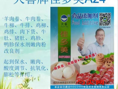 ★功能作用:〔佳多美A24型〕可用于羊肉卷、牛肉卷、牛柳、牛排、鸡柳、鸡排、肉下货、牛肚、猪肚、鸡胗、鸭胗、鱼豆腐等无磷肉制品以及各类食品,起到保水、嫩肉、酸度调节、抗氧化、膨松等作用。〔佳多美A24型〕适用于无磷肉制品和水产品腌制工艺、滚揉工艺、注射工艺、水发工艺、喷涂工艺。〔佳多美A24型〕还可用于无磷烤鸡翅、无磷炸鸡爪、无磷炸鸡翅、无磷烤鸡翅、无磷卤鸡爪、速冻无磷烤鸡翅、无磷烤鸡翅、无磷烤肠、无磷小酥肉、油炸大酥肉、卤鸡爪、无磷鸡排、无磷鸡米花、无磷鸡柳、无磷脆皮鸡肉圈、烤肠、烤鸡翅、四喜丸子等。