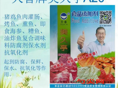 ★功能作用:〔美久亭A20型〕用于猪肉灌肠、鸡肉灌肠、鱼肉灌肠、烤鱼、熏鱼、即食海参、糟鱼、油炸鱼、虾酱、熟海蜇、炸鱼皮、烤鱼片、烤虾等肉灌肠类、熟制水产品、复合调味料,起到防腐、保鲜、保水、抗氧化等作用。对于烤、炸鱼类虾类,还有肉质细嫩、口感酥脆的作用。
