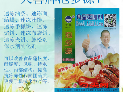 ★功能作用:本品用于速冻油条、速冻油馍头、速冻面蛤蟆、速冻壮馍、速冻手抓饼、速冻馅饼、速冻布袋饼、速冻夹饼、速冻奶黄包、速冻包子、速冻馒头、速冻花卷、速冻花糕等食品,可以改善食品蓬松度、酥脆度、风味、持水性、内部结构,提高抗冷冻性和面团品质,更便于机械化生产等。本品相对于泡多源L型具有更好膨松度。